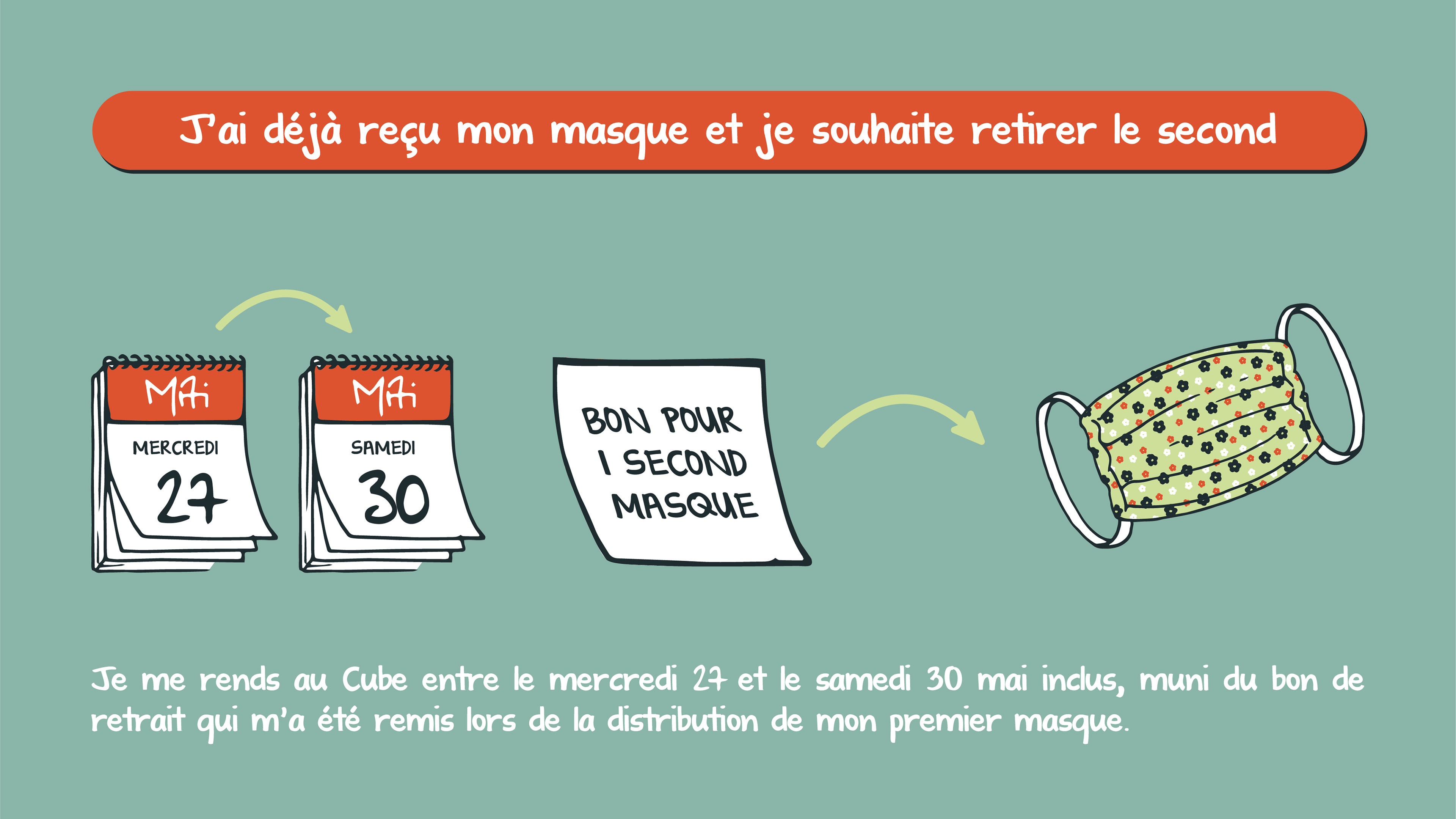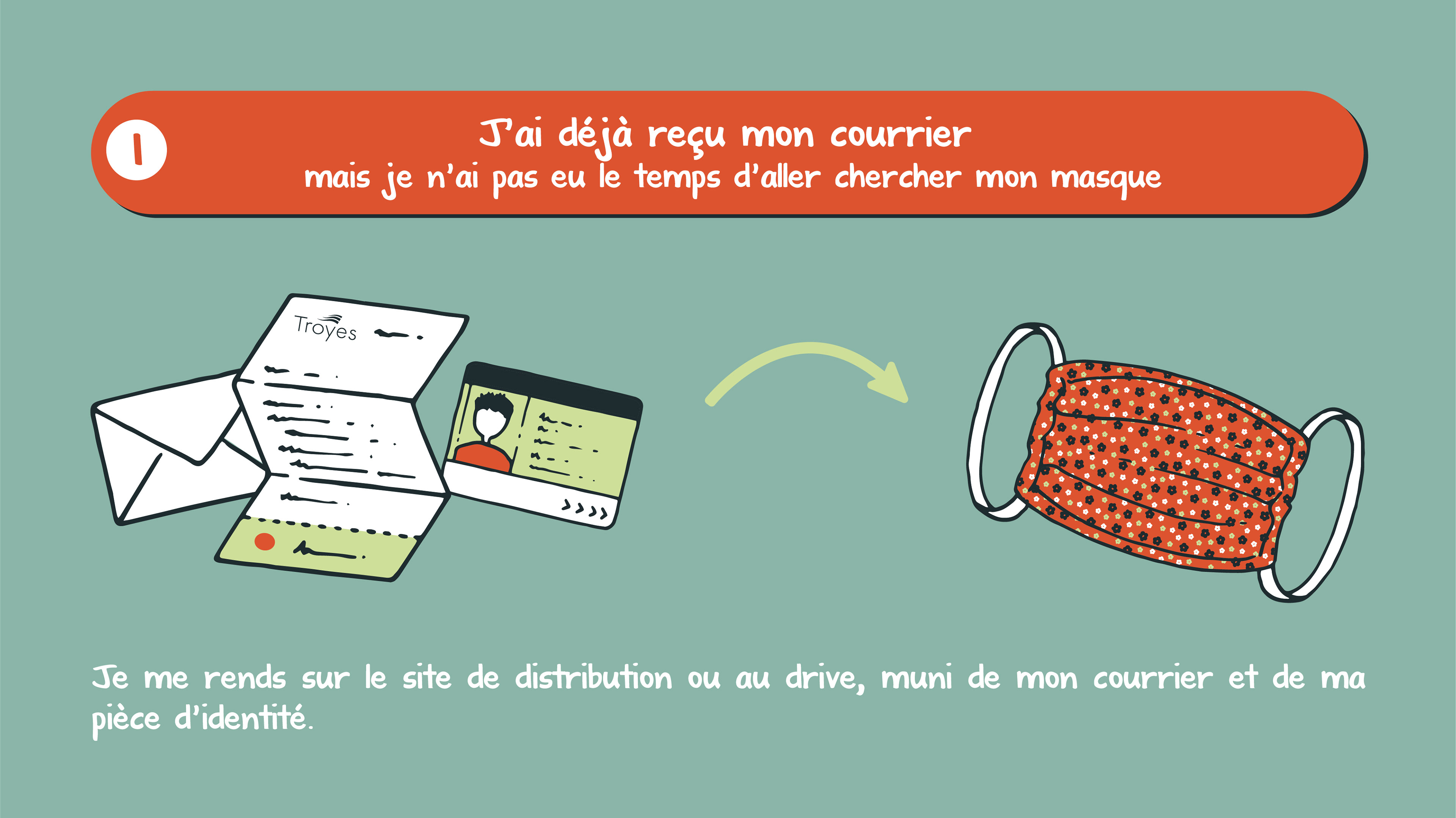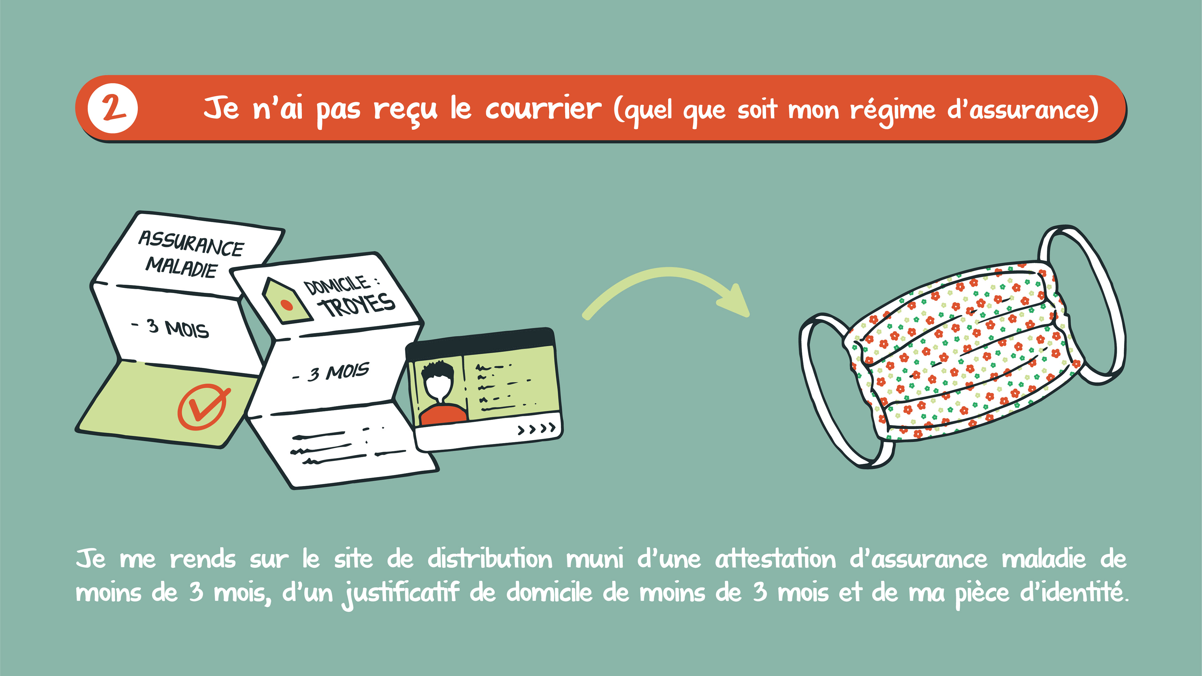 Infographies illustrées réalisées lors de la pandémie de Covid-19 pour expliquer les formalités de distribution des masques