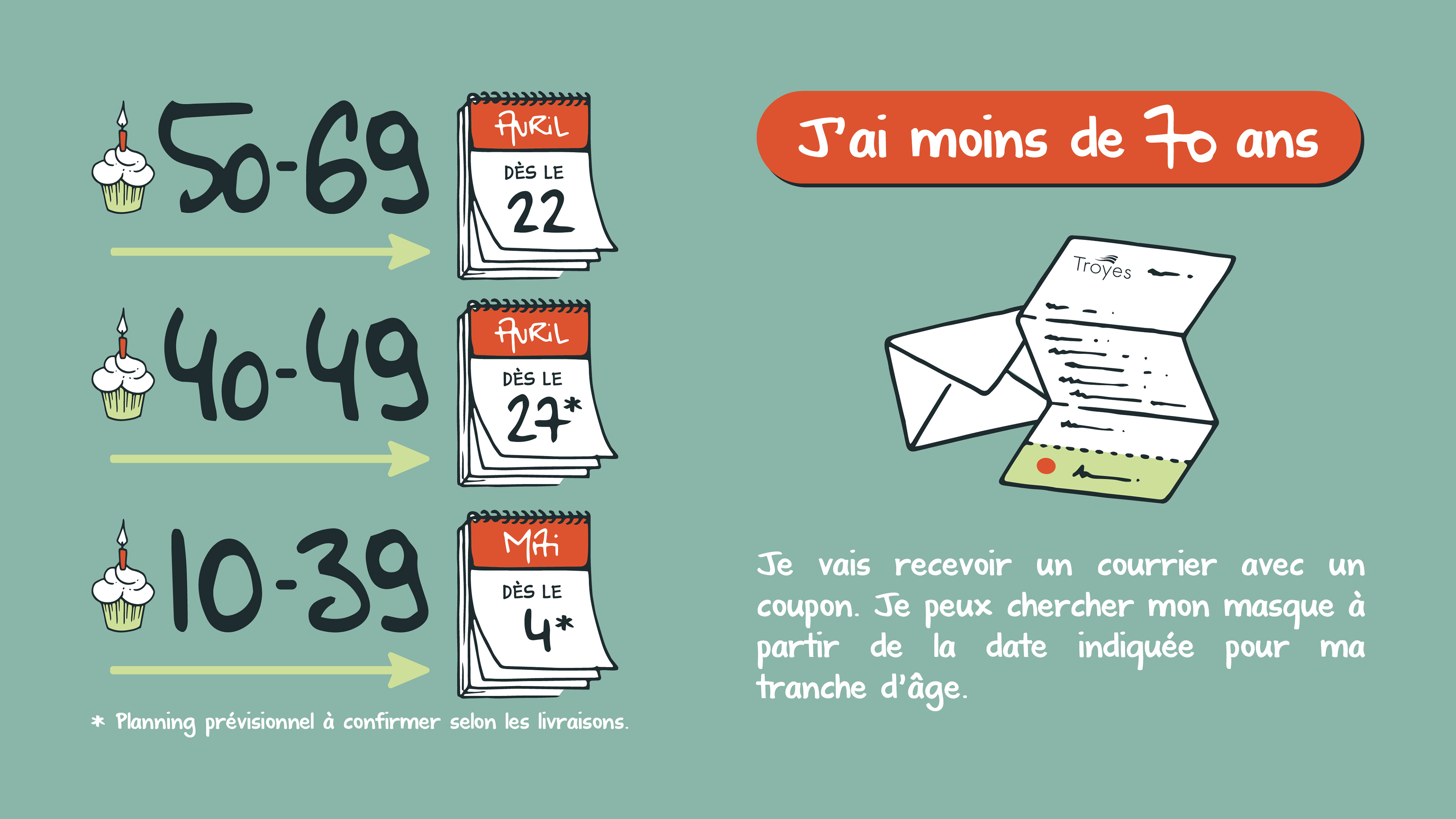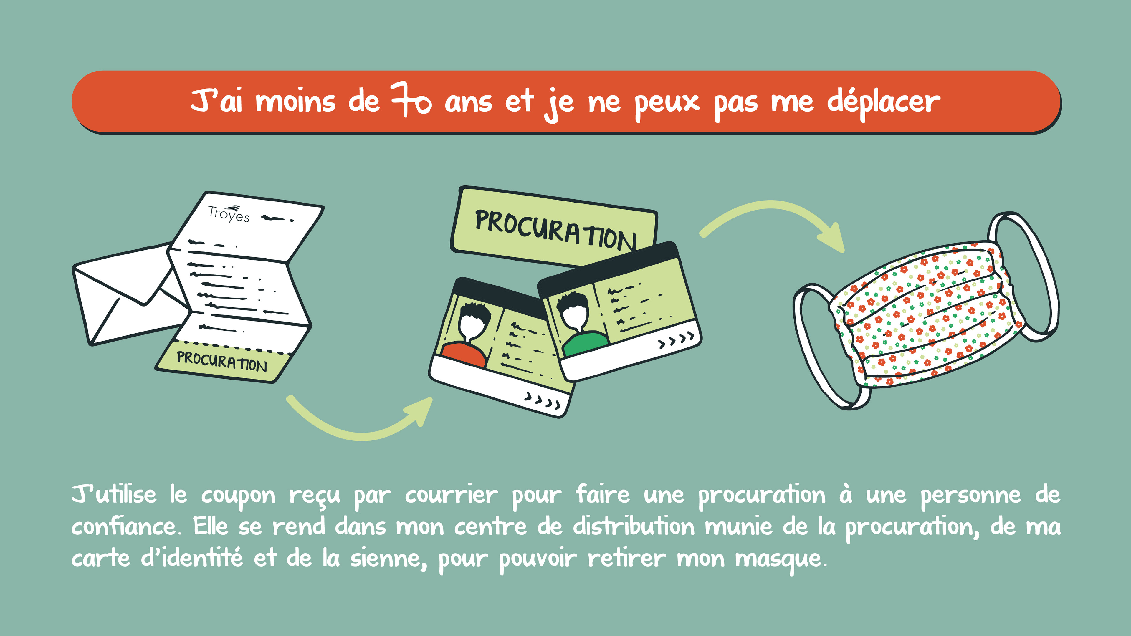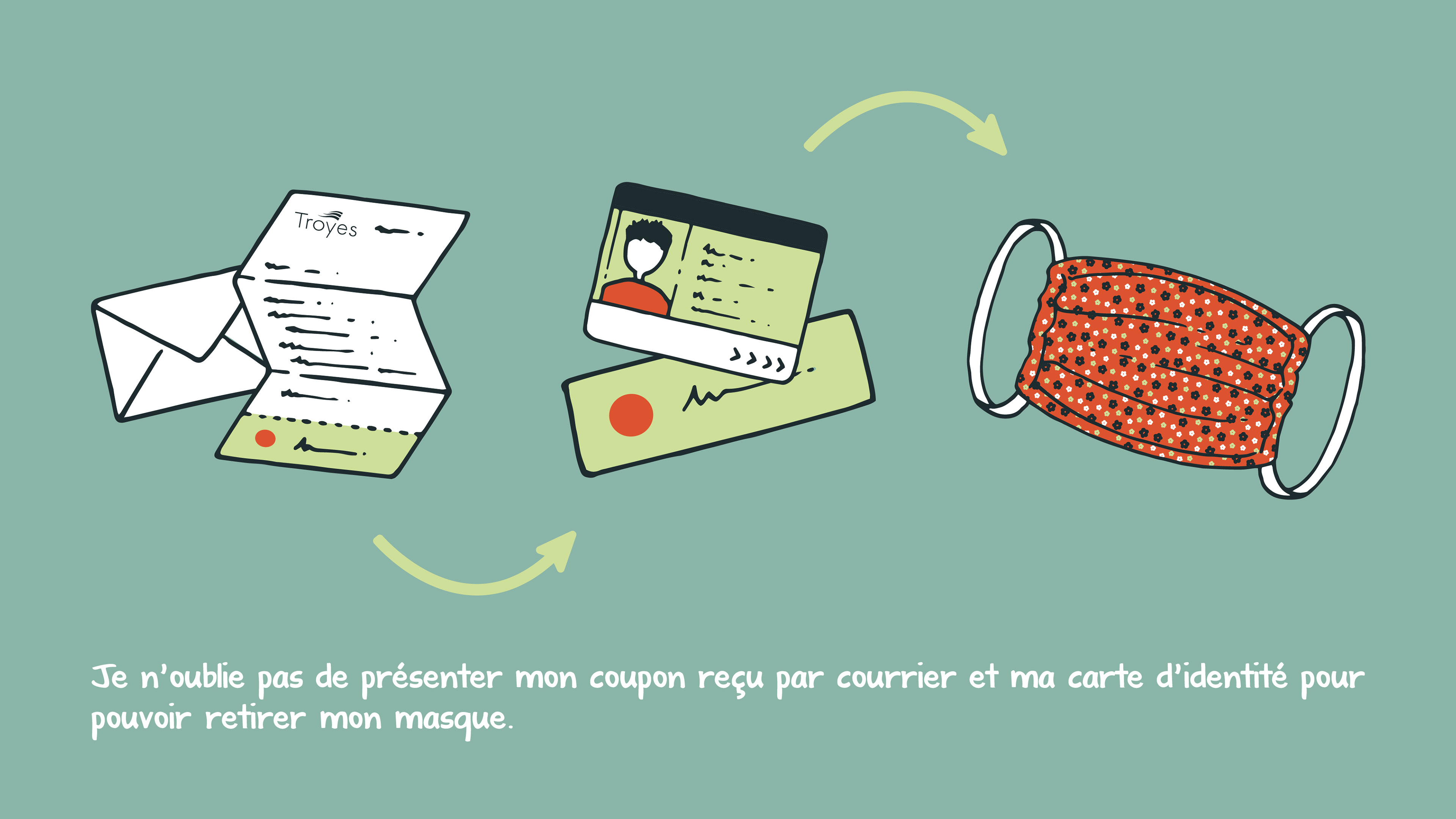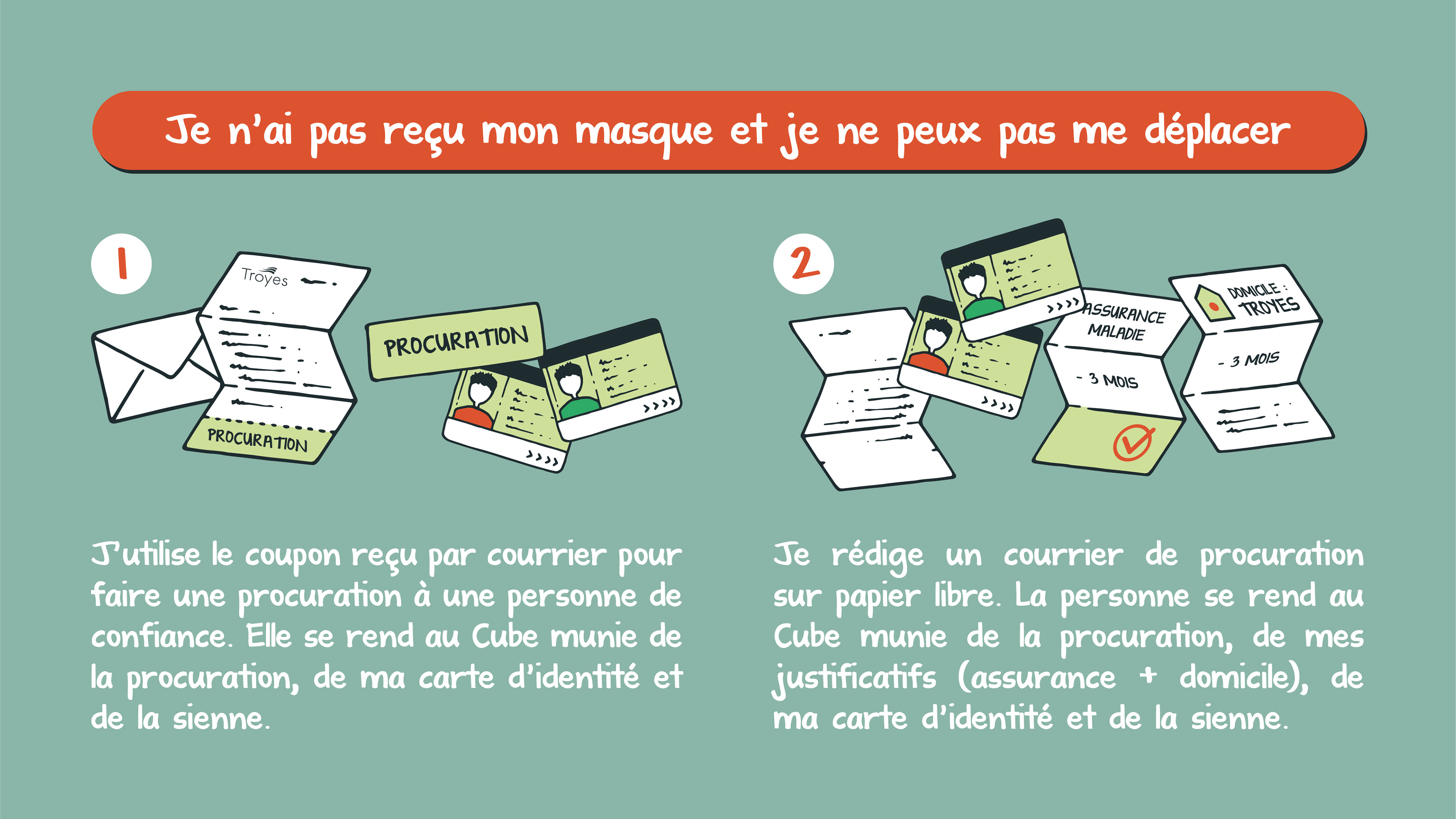 Infographies illustrées réalisées lors de la pandémie de Covid-19 pour expliquer les formalités de distribution des masques