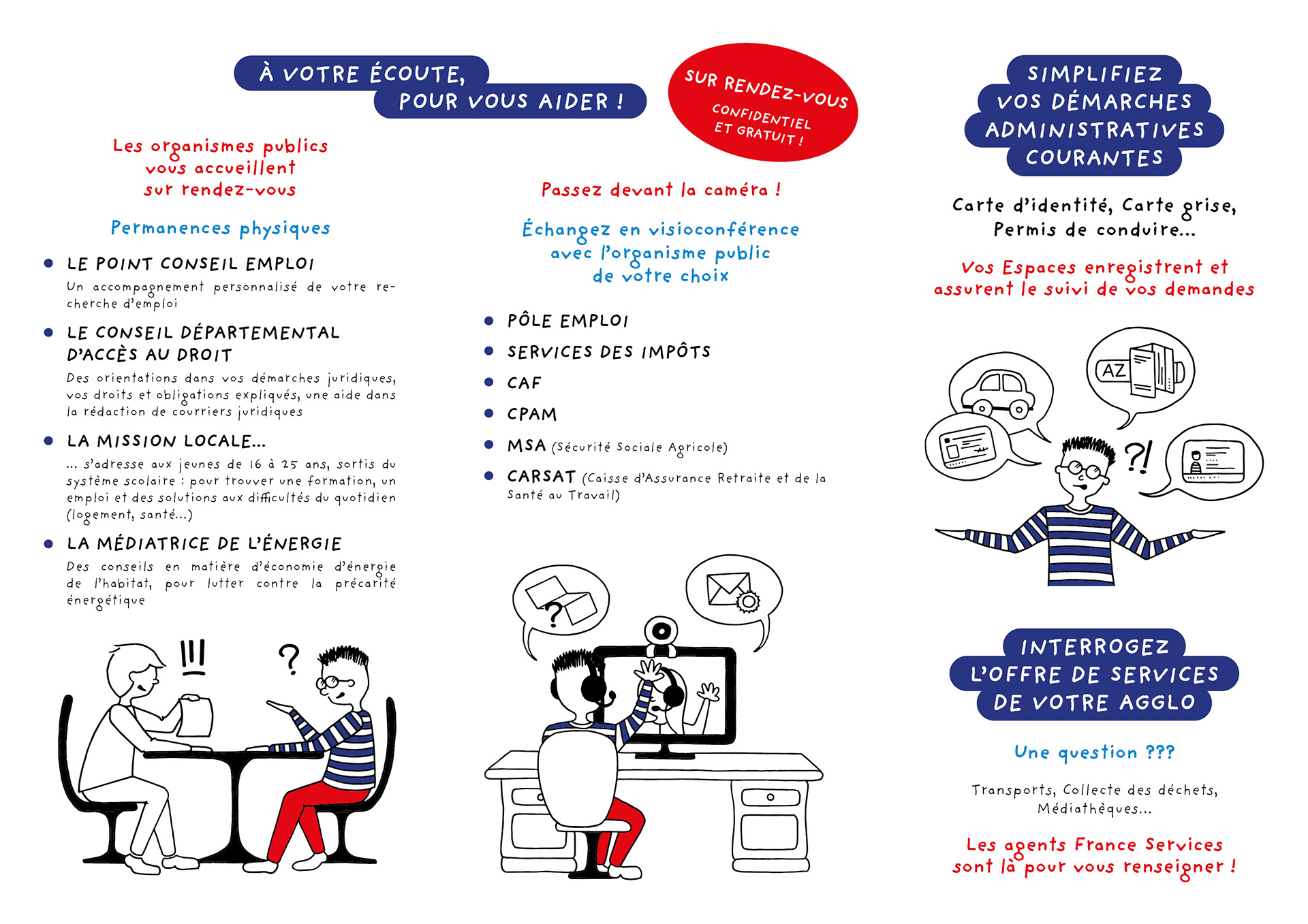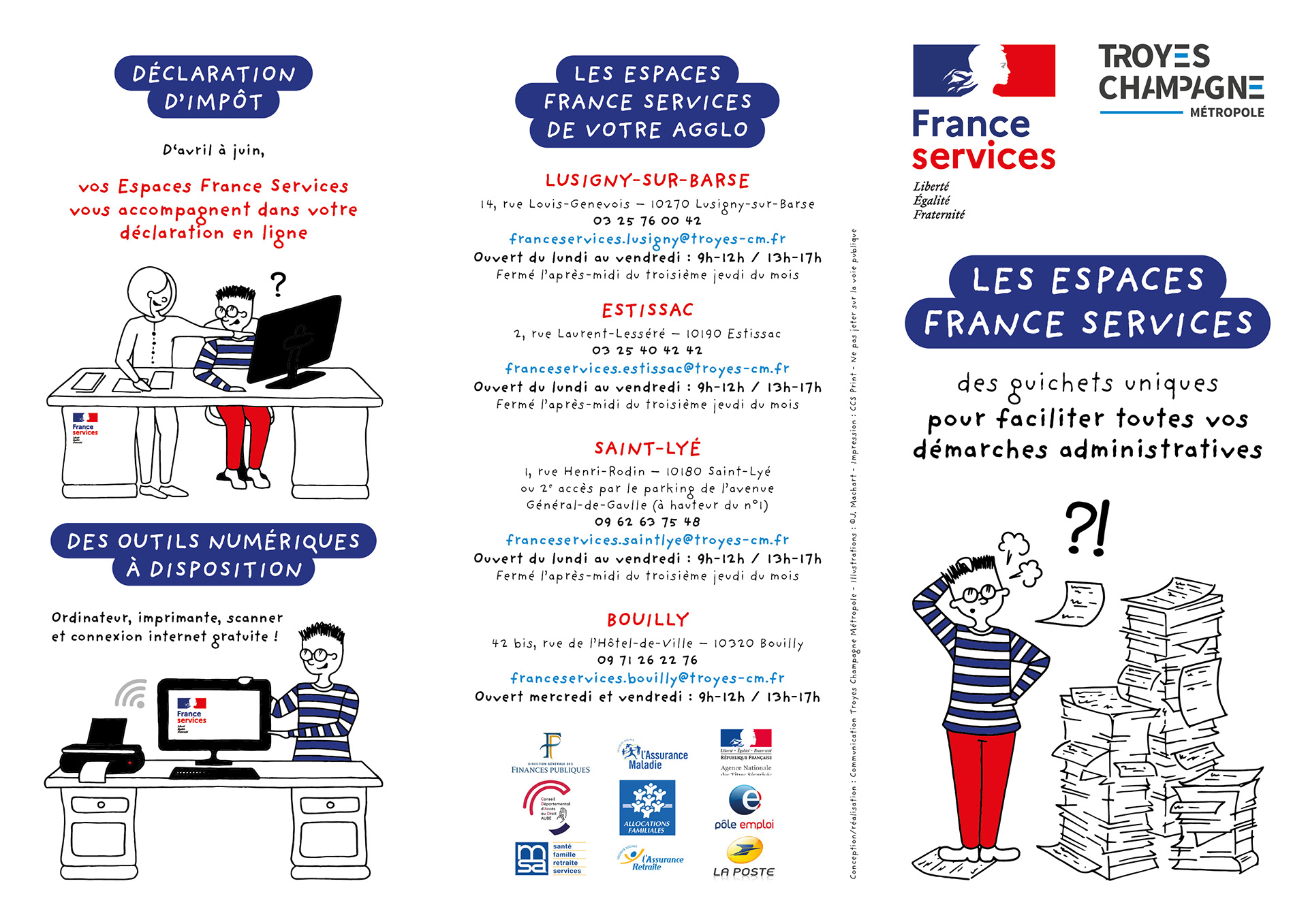 Illustrations réalisées pour les supports de communication autour de l'offre des Espaces France Services de Troyes Champagne Métropole
